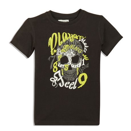 Cette saison les tee-shirts garçon se parent d'imprimé tête de mort ! La preuve en image avec ce t-shirt à manches courtes ! 100% coton. Jersey confortable. Imprimé sur le devant, avec légers reliefs par endroits. Col rond. Pas d'étiquette dans le cou pour le confort. Ce t-shirt enfant est lavable e