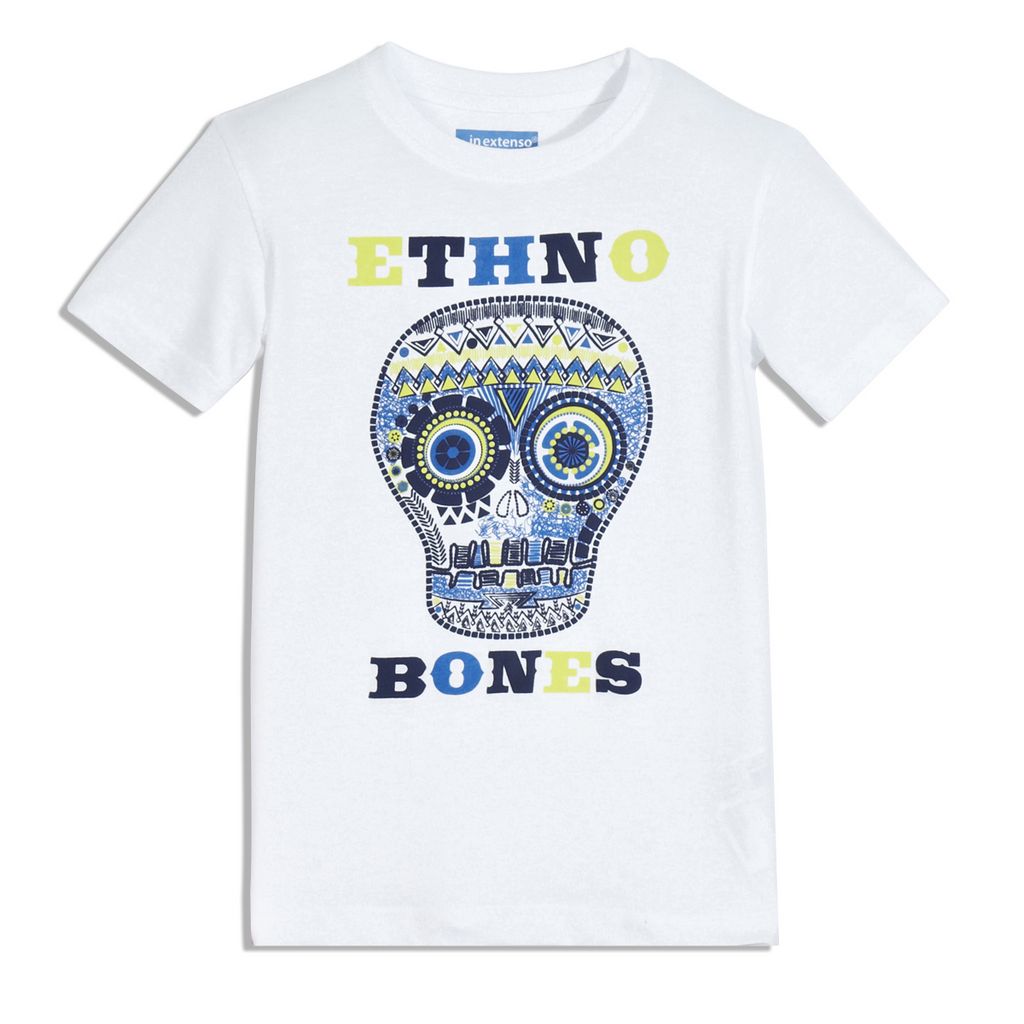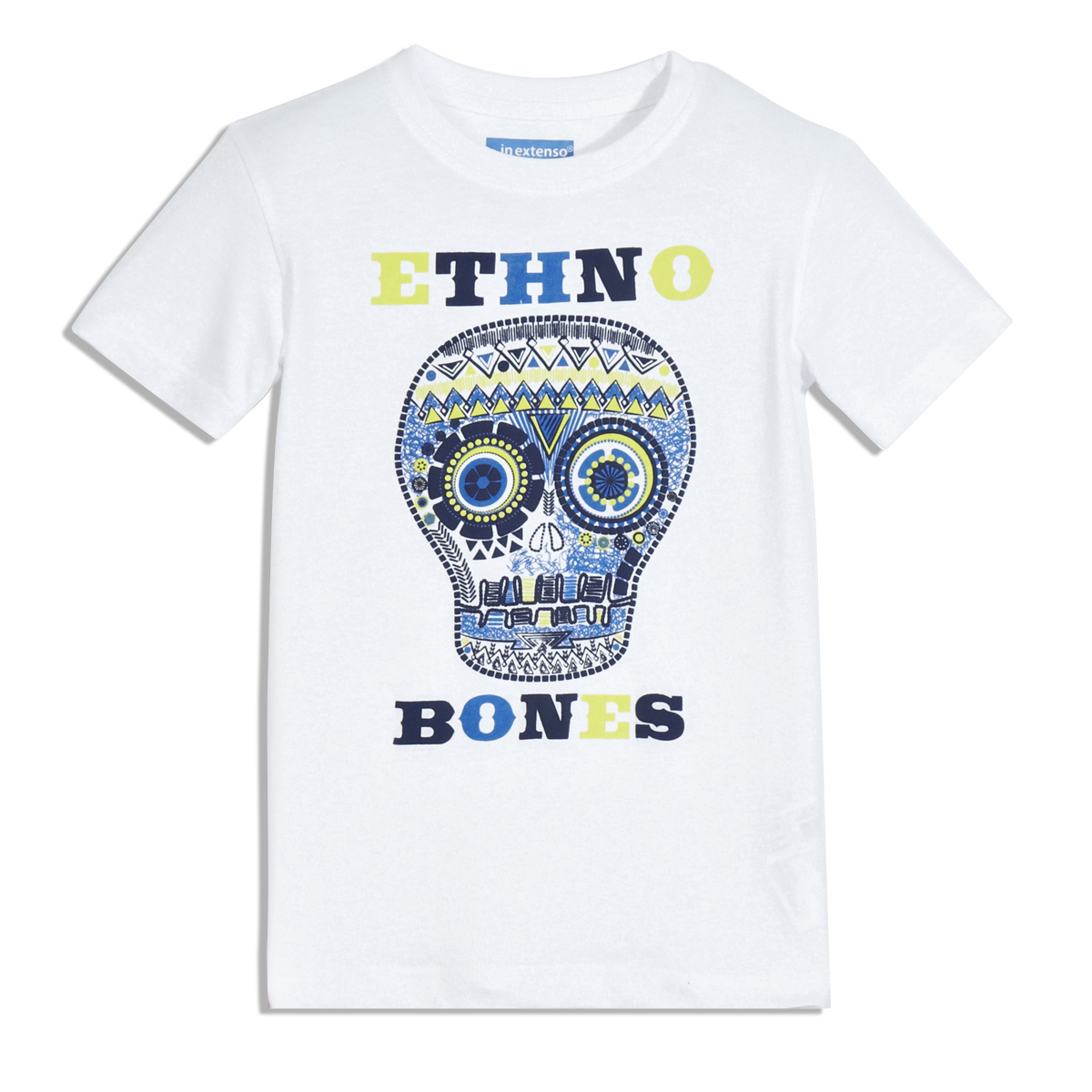 Sympa ce tee-shirt garçon avec son animation tête de mort ! On aime aussi les motifs géométriques. 100% coton. Agréable à porter. Imprimé sur le devant. Col rond. Pas d'étiquette dans le cou pour plus de confort. Ce t-shirt garçon à manches courtes est lavable en machine à 40°.