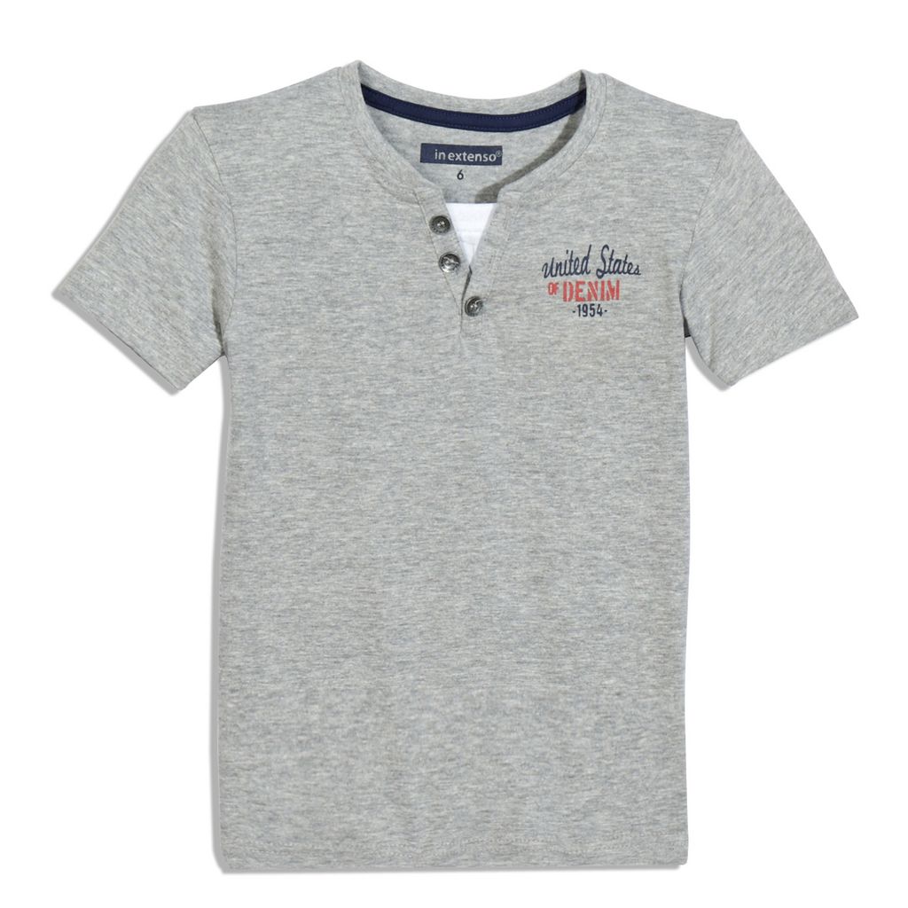 Ce tee-shirt garçon joue la carte de l'originalité avec son col animé d'une patte boutonnée et d'un empiècement contrasté. Jersey confortable. Aucune étiquette dans le cou pour un confort complet. Texte imprimé sur la poitrine. Ce tee-shirt garçon à manches courtes est lavable en machine à 40°.