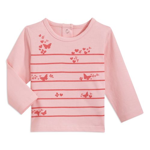 Ce tee-shirt bébé fille se pare d'un jeu de rayures et de charmants papillons pour séduire les mamans. Pur coton. Agréable à porter. Ouverture pressionnée à mi-dos, c'est plus facile pour passer la tête de bébé. Col rond. Manches longues. Imprimé sur le devant. Pas d'étiquette dans le cou pour un su