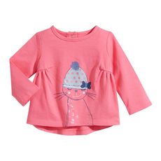 Ce tee-shirt bébé fille mise tout sur la fantaisie : les mamans craquent ! On aime : l'imprimé sur le devant, avec légères paillettes, les fronces élastiquées sur les côtés. Agréable à porter. 100% coton. Coupe évasée. Pratique : ouverture pressionnée en haut du dos. Col rond, manches longues.