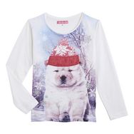 Ambiance hivernale et girly au rendez-vous avec ce tee-shirt fille : on craque ! Jersey 100% coton, agréable à porter. Grand print sur le devant, avec touches argentées et empiècement toucher peluche. Col rond. Manches longues. Aucune étiquette dans le cou pour un confort parfait. Ce t-shirt fi