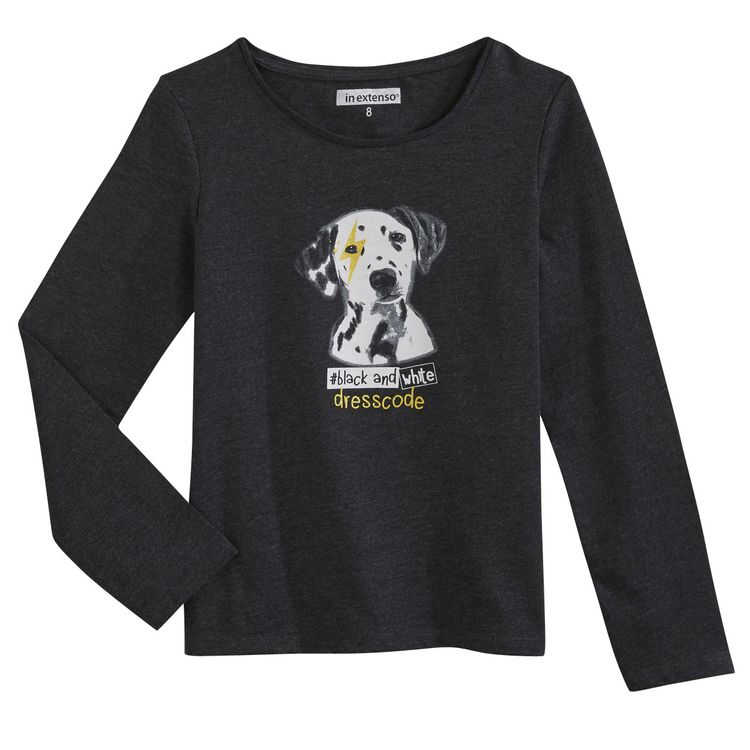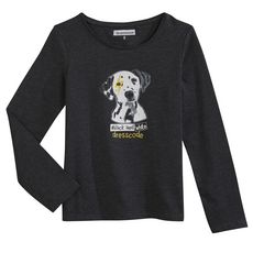 Les filles craquent complètement pour le décor "chien" de ce tee-shirt ! Toucher doux, agréable à porter. Col rond. Manches longues. Il n'y a pas d'étiquette qui gratte dans le cou pour un supplément de confort. Imprimé sur le devant, avec légères paillettes. Ce t-shirt fille est lavable en mach
