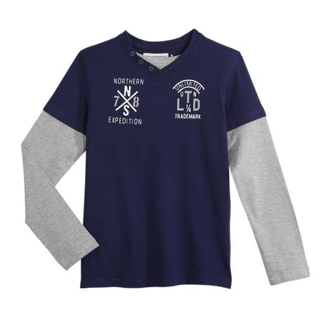Look 100% sportif pour les garçons avec ce tee-shirt 2 en 1 ! Jersey 100% coton. Effet 2 en 1 au col et aux manches. Imprimé sur la poitrine. Boutons fantaisie à l'encolure. Il n'y a pas d'étiquette dans le cou pour un maximum de confort. Ce t-shirt à manches longues garçon est lavable en machi
