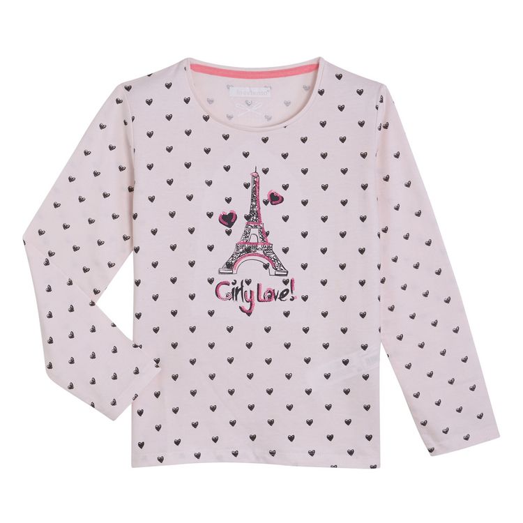 Girly et à la mode, ce tee-shirt fille a tout bon ! Jersey 100% coton agréable à porter. Col rond. Manches longues. Imprimé coeurs, avec sequins, sur le devant. Il n'y a pas d'étiquette dans le cou pour le confort. Ce t-shirt fille est lavable en machine à 40°.