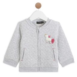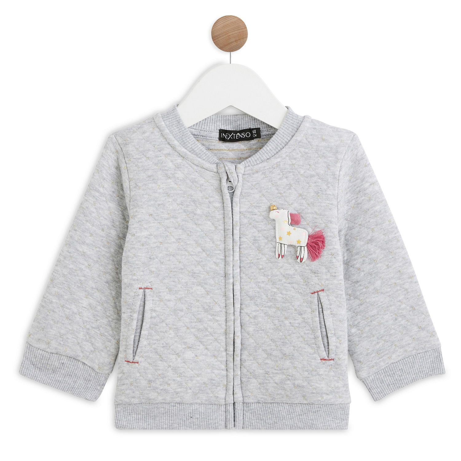 Cette veste en molleton quilté à points brillants est agréable à porter et doux. On craque pour le patch en relief et en forme de licorne cousue à la poitrine, avec des petites franges ! La veste possède une ouverture zippée et 2 poches raglan devant. Finition bords-côtes.