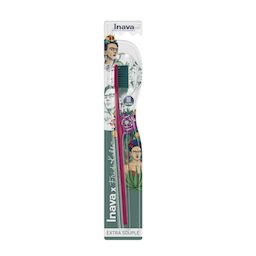 Avec cette brosse à dents manuelle, Inava s'associe à Frida Khalo pour créer une palette de teintes inspirées de l'artiste. Idéale pour les dents et gencives sensibles, cette brosse à dents extra-souple mettra de la couleur dans votre salle de bain ! Coloris magenta, vert lierre, bleu cobalt ou bordeaux selon disponibilité.