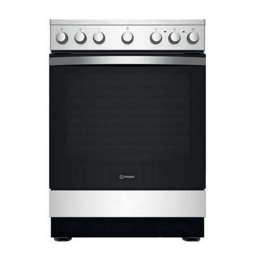 Cette cuisinière vitrocéramique Indesit IS67V5PCX/E de couleur inox est dotée de 4 foyers et d'un four multifonction chaleur tournante assurant une cuisson homogène.