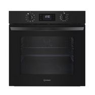 Indesit IO5280CB Four catalyse IO5280CB Indesit. Ce four multifonction allie performance et simplicité pour une cuisine réussie. Avec ses 8 modes de cuisson, dont la chaleur pulsée et la chaleur tournante Eco, il s'adapte à toutes vos recettes. Son programmateur allie commandes sensitives et manettes, avec un affichage blanc et une préconisation automatique de température. La fonction Turn&Go vous permet de cuire facilement un plat en un seul geste. Son volume généreux de 71 L et sa alte énergétique A+ garantissent une grande capacité tout en restant économe. Équipé d'une grille, d'une lèchefrite et d'un gril basculant, il est aussi compatible avec des rails télescopiques en option. La contre-porte plein verre et le système Click&Clean facilitent le nettoyage. L'éclairage halogène de 25 W assure une visibilité parfaite pendant la cuisson. Porte démontable avec vitre amovible pour un entretien simplifié. Finition élégante en verre noir avec bandeau métal mat.