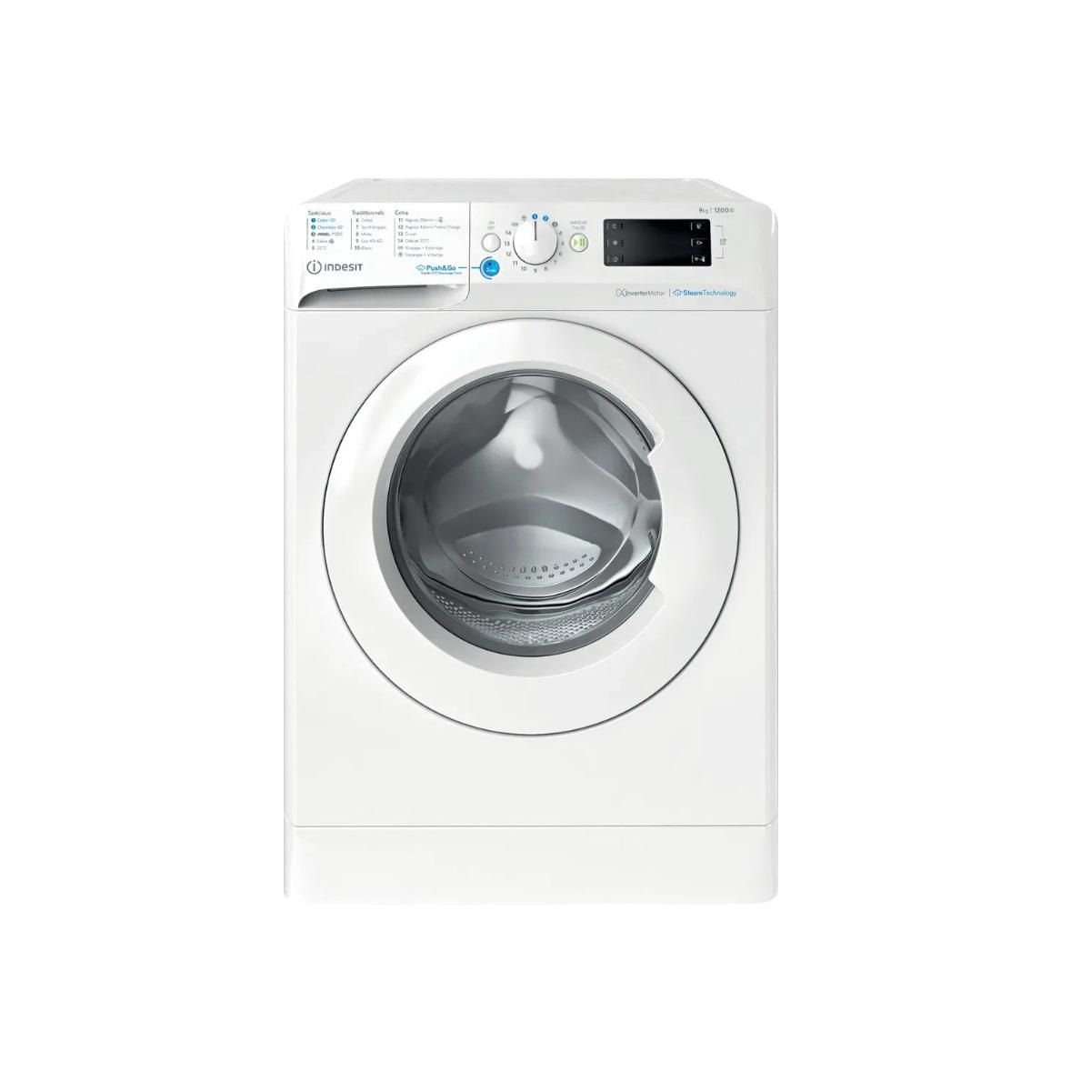 Indesit BWE91295XWVFR Ce lave-linge hublot posable BWE91295XWVFR de la marque Indesit présente les caractéristiques suivantes : grande capacité de 9,0 kg. Classe énergétique B. Une vitesse d'essorage rapide de 1200 tours/min. - Type : Lave-linge frontal.Capacité de lavage (kg) : 9.Classe d'efficacit