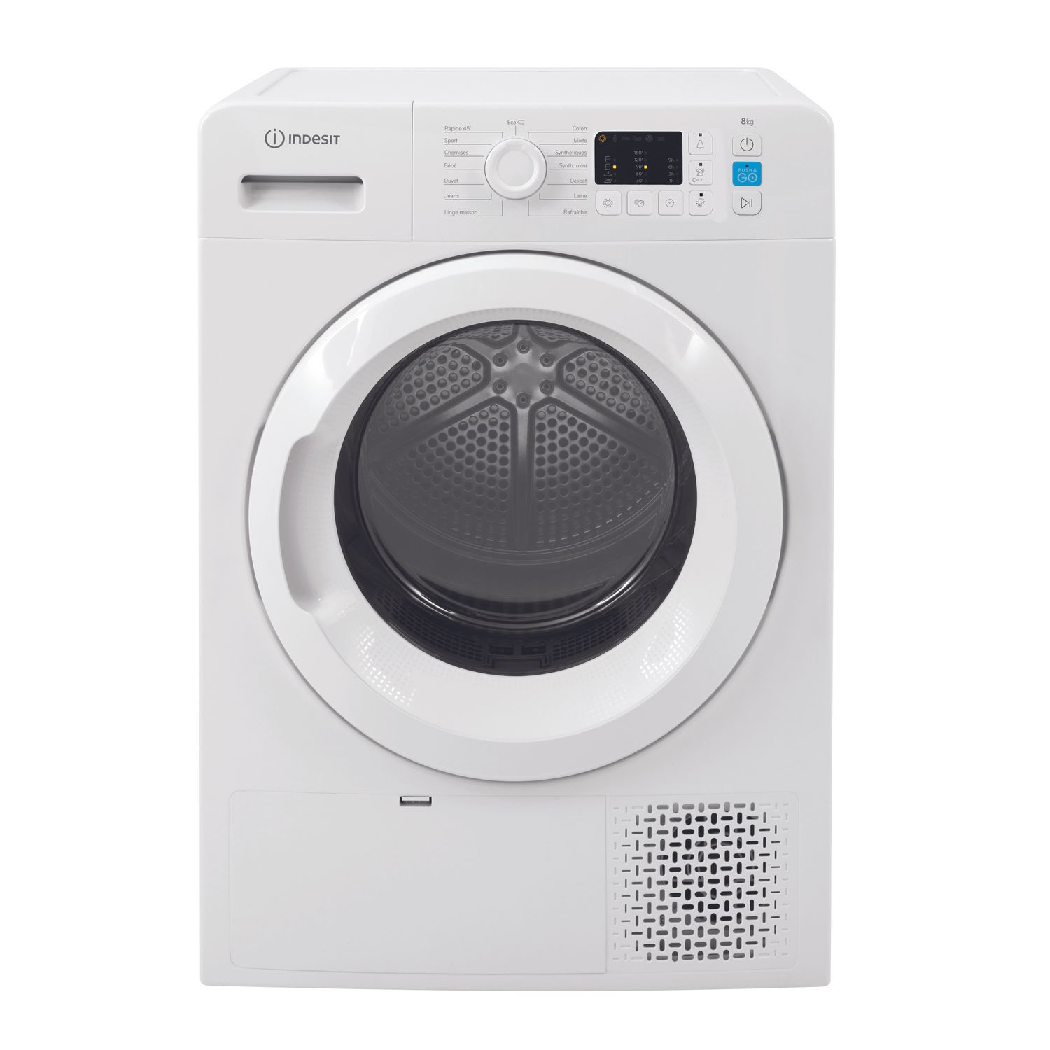 Le sèche-linge à pompe à chaleur INDESIT YTNM1081FR et sa technologie Easy-Cleaning est un appareil conçu pour sécher votre linge rapidement et efficacement. Il est doté de 15 programmes de séchages permettant de personnaliser vos cycles selon vos besoins. Avec sa capacité de 8 kg, ce sèche-linge hublot est idéal pour un couple ou une petite famille. Vous avez la possibilité de programmer un départ différé jusqu’à 9h.