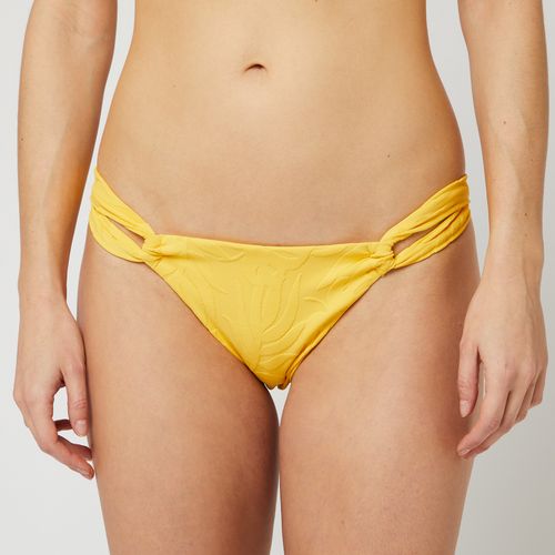 Facile à combiner avec un haut assorti ou imprimé, cette culotte bikini unie multiplie les détails pour plus de féminité : elle séduit par ses découpes fantaisie sur le côté pour une allure sexy et adopte un esprit végétal en affichant un joli motif ton sur ton. Côté confort, ce bas de maillot de ba