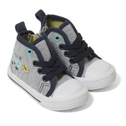 Des baskets hautes bébé stylées et faciles à enfiler : on est fans ! Intérieur confortable. Dessus en textile, orné de surpiqûres et d'un imprimé fantaisie. Zip sur le côté pour les enfiler facilement, lacets assurant un bon maintien. Semelles élastomère antidérapantes pour ces baskets en to