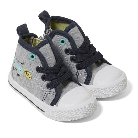 En savoir +Des baskets hautes bébé stylées et faciles à enfiler : on est fans ! Intérieur confortable. Dessus en textile, orné de surpiqûres et d'un imprimé fantaisie. Zip sur le côté pour les enfiler facilement, lacets assurant un bon maintien. Semelles élastomère antidérapantes pour ces baskets en toile bébé garçon.