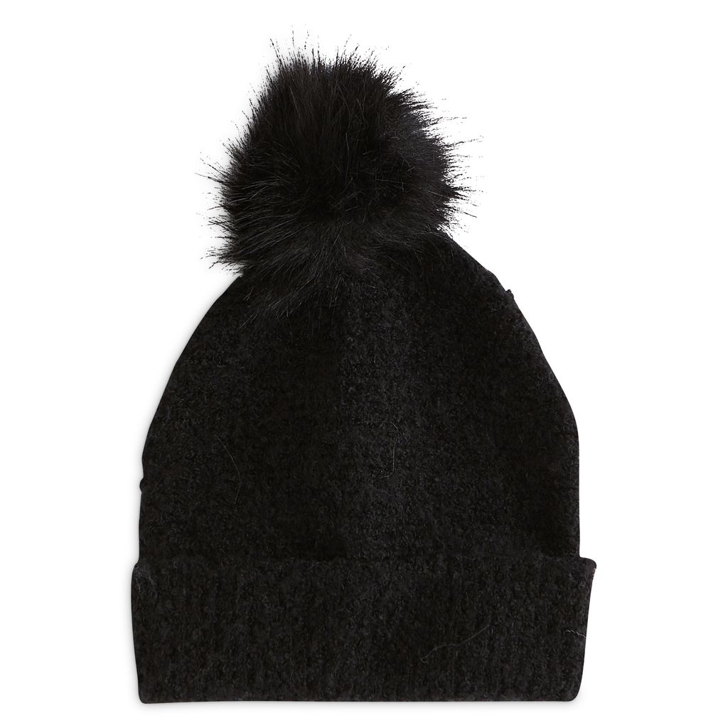 Bonnet pompon noir femme