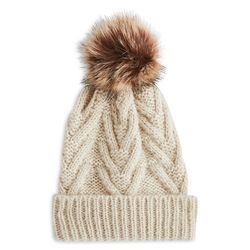 Bonnet torsade pompon beige femme