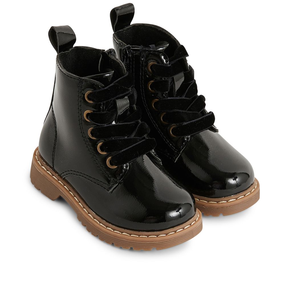 Bébé a un pas d'avance sur la mode avec ces jolies bottines ! Confortables, elles sont vernies et possède une ouverture facile par un zip latéral et à lacets. La semelle est antidérapante.