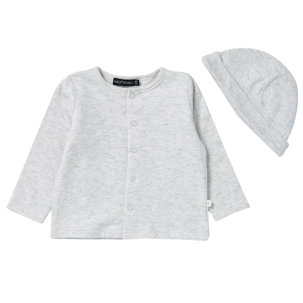 En savoir +Idéal pour les tout premiers jours de bébé, cet ensemble 4 pièces en jersey tout doux se compose d'un body manches longues avec ouverture pressionnée croisée sur le devant, d'une combinaison à pieds à l'imprimé poétique et délicat avec bretelles pressionnées, d'un gilet gris clair en molleton doublé de pointelle avec ouverture pressionnée et d'un bonnet assorti.