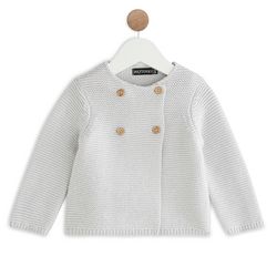 En matière bien chaude, ce cardigan confectionné au point mousse est parfait pour réchauffer les petites blouses et robes de bébé. Il se ferme par 4 boutons devant. On aime son coloris jaune doré, parfait pour la bonne mine de bébé !