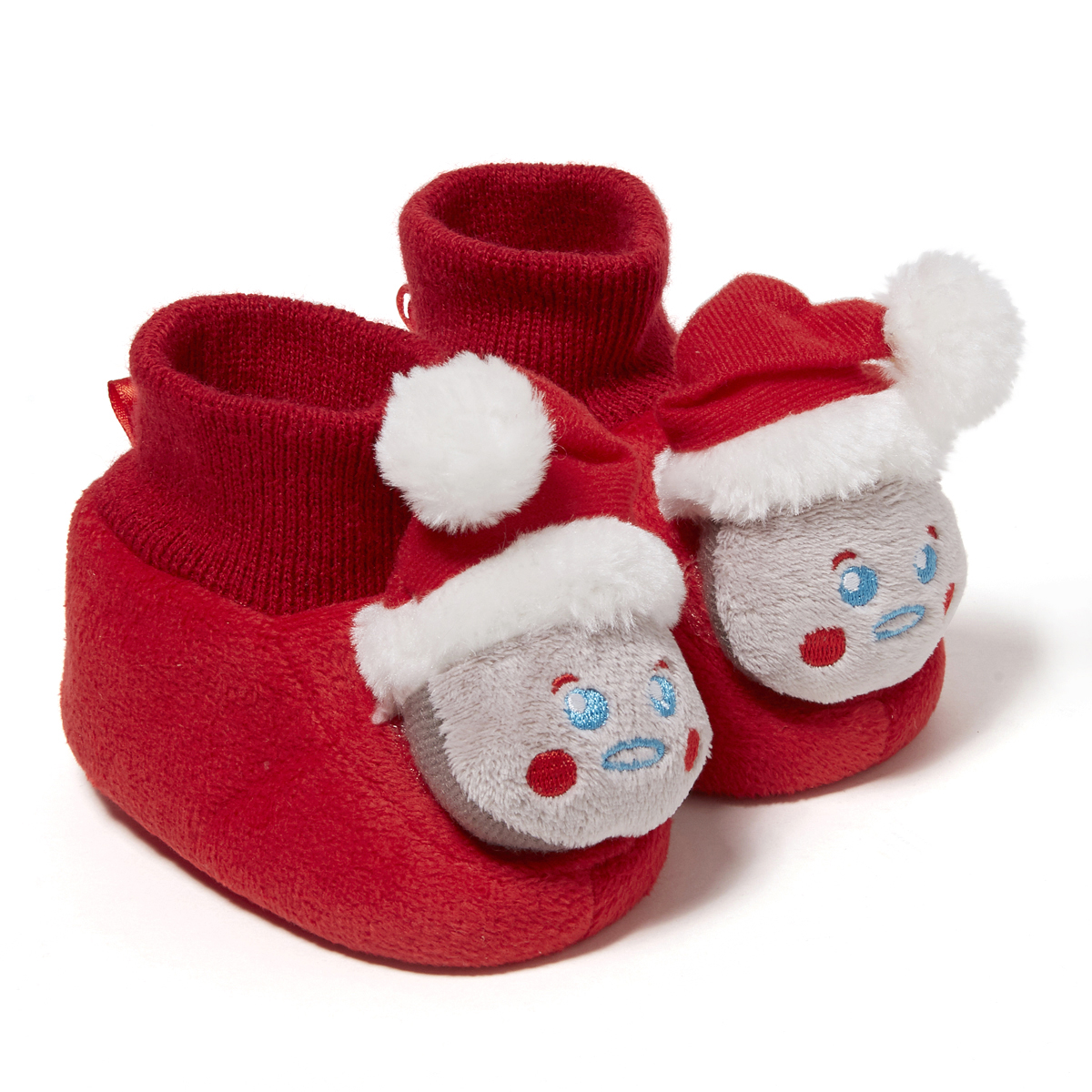 Pour vivre la magie de Noël à 100% : les chaussons moutons pour bébé. Agréables à porter. Réalisés en textile. Dessus orné d'une tête de mouton fantaisie avec bonnet de père Noël. Bord élastiqué. Ces chaussons bébé sont parfaits pour égayer la période de Noël !