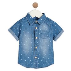 En savoir +Indispensable du dressing de bébé, cette petite chemise en jean imprimée petits losanges accompagne joliment toutes ses tenues ! Portée seule au-dessus du body ou ouverte sur un t-shirt, elle a tout d'une grande avec sa poche plaquée à la poitrine. Elle possède des manches courtes avec revers cousus.