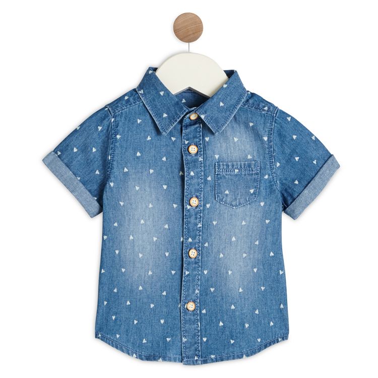 Indispensable du dressing de bébé, cette petite chemise en jean imprimée petits losanges accompagne joliment toutes ses tenues ! Portée seule au-dessus du body ou ouverte sur un t-shirt, elle a tout d'une grande avec sa poche plaquée à la poitrine. Elle possède des manches courtes avec revers cousus