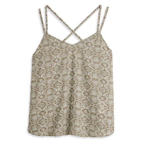Fluide et légère, cette blouse en polyester sera parfaite à associer avec nos petites tenues d’été pour une allure tendance. Joliment imprimé, ce petit haut est rythmé par une encolure V devant et dos, et des bretelles doubles devant et croisées au dos pour apporter une touche d’original