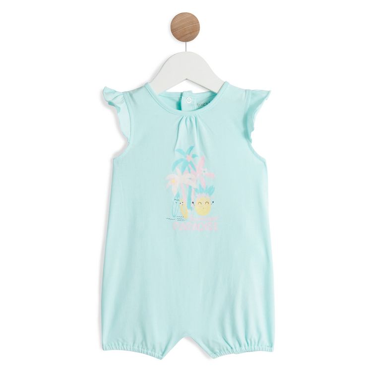 Quelle jolie combinaison pleine de fraîcheur parfaite pour cet été ! Avec son motif fruits rigolos imprimé devant et ses emmanchures volantées, votre petite princesse sera carrément à croquer ! L'ouverture entièrement pressionnée à l'entrejambe et les cuisses élastiquées facilitent le change et l&rs