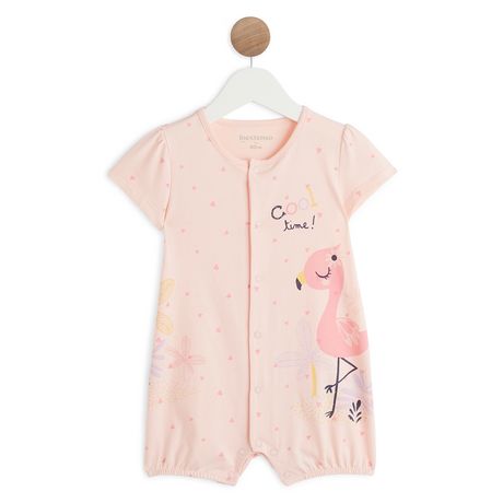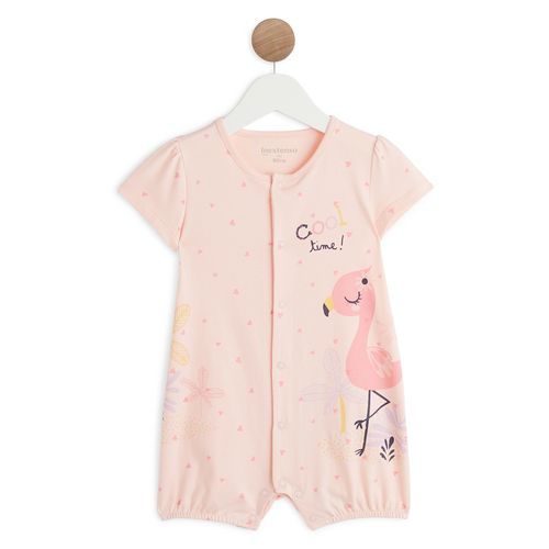 Cet été, on craque pour cette jolie combinaison courte imprimée d'un mignon flamant rose sur un fond rempli de cœurs ! Bébé sera carrément à croquer dedans ! Légère et haute en couleur, la combinaison est conçue en 100% coton facile d'entretien.