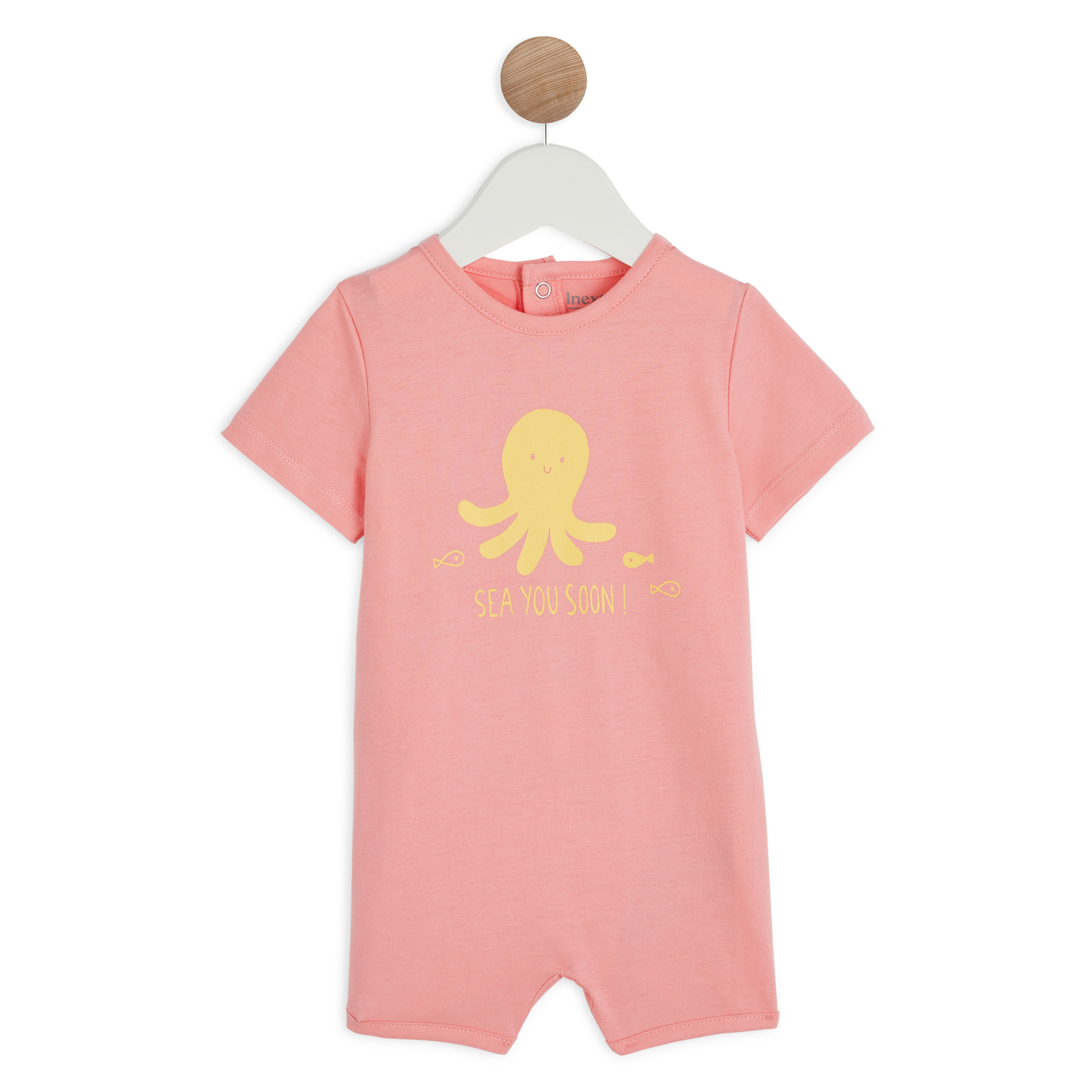Confectionné dans un coton tout doux qui offre aisance et confort, ce combicourt en jersey permet un enfilage et un change faciles grâce à sa fermeture par boutons pression au dos. Cet indispensable du vestiaire estival de bébé se pare d’une encolure ronde, d’un motif placé devant et de