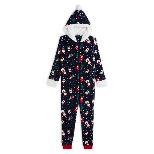 Les petits garçons plongent dans la magie de Noël avec cette combinaison pyjama imprimée fantaisie ! En maille peluche super moelleuse et douce, la combinaison possède une capuche doublée en sherpa, avec un petit pompon sur le dessus. Pratique à enfiler, cette combinaison est zippée sur le devant et