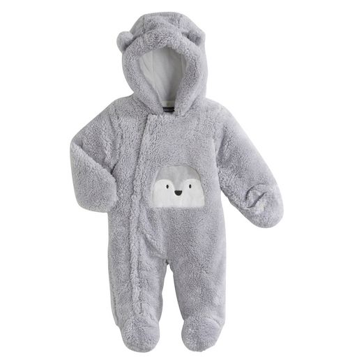 On ne résiste pas à cette combinaison pilote bébé toute douce, qui protégera parfaitement bébé lors de ses promenades hivernales. Large ouverture zippée sur le devant, très pratique. Doublure intérieure pour plus de confort. Capuche à oreilles fantaisie en relief sur le dessus. Moufles semi-a
