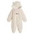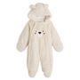 La combinaison est très chaude et très agréable à porter. Notre fille sourit des qu'elle voit qu'on va lui mettre son noursnours. Reste très beau après passage à la machine!