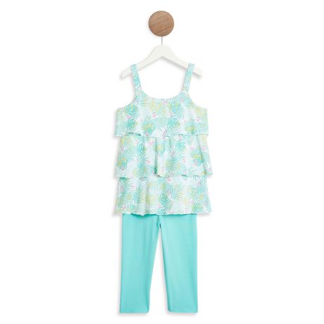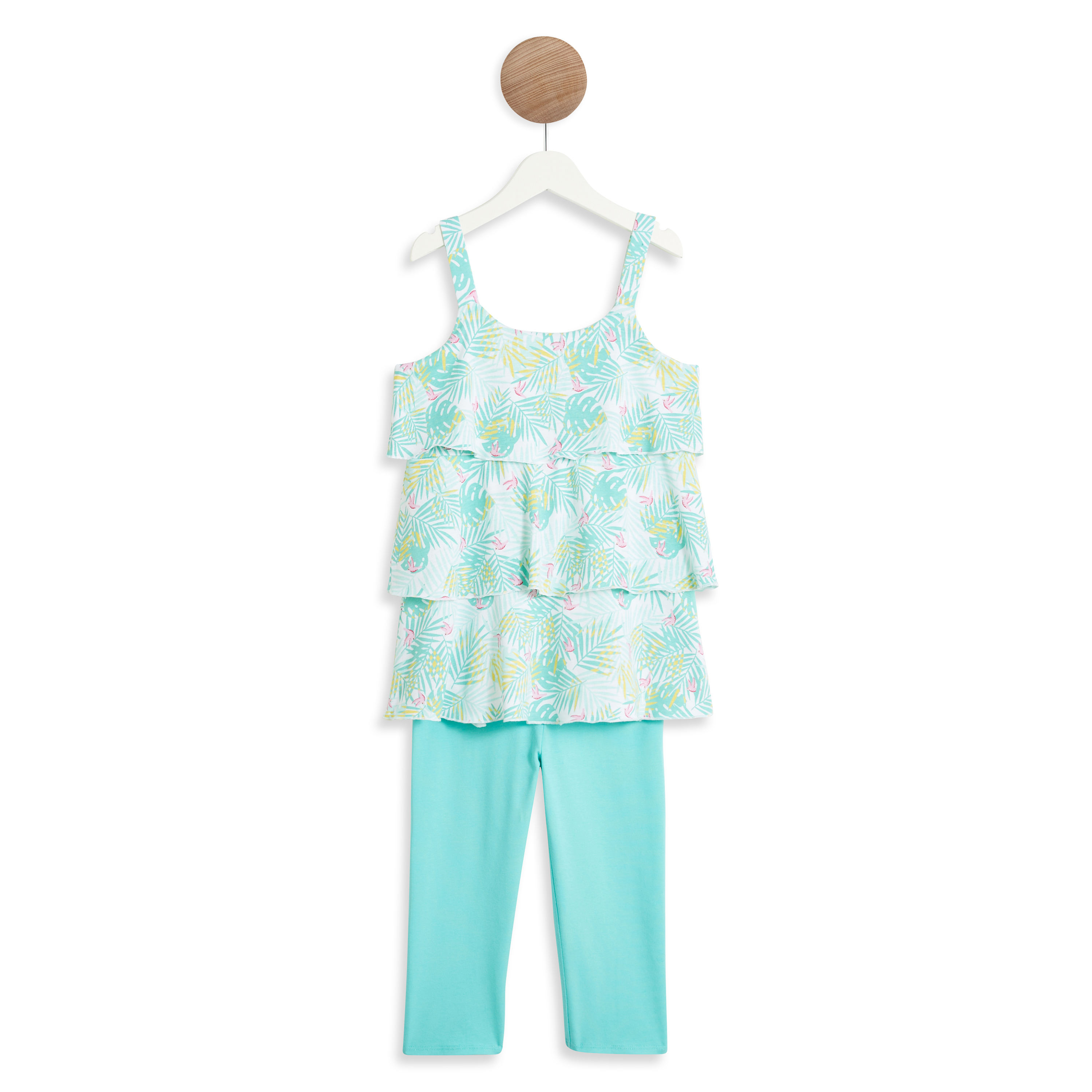 En savoir +Parfait pour l’été, les filles vont adorer porter ce joli ensemble ! Il est composé d’un legging confectionné dans une matière douce très agréable à porter et d’un petit débardeur léger à fines bretelles et volants qui affiche un joli imprimé floral.