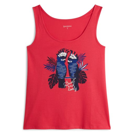 En savoir +Légèreté et confort caractérisent ce beau débardeur imprimé devant ! Il est parfait pour une tenue estivale, en vacances ou en balade.