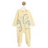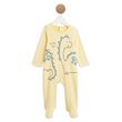 En jersey léger bien couvrant mais pas trop chaud, ce dors-bien est parfait pour habiller bébé lorsque les températures grimpent. Il affiche un motif dinosaure trio rigolo imprimé sur un fond jaune rayé ! Le dors-bien est entièrement pressionné par pont au dos pour un change et un habillage facile.