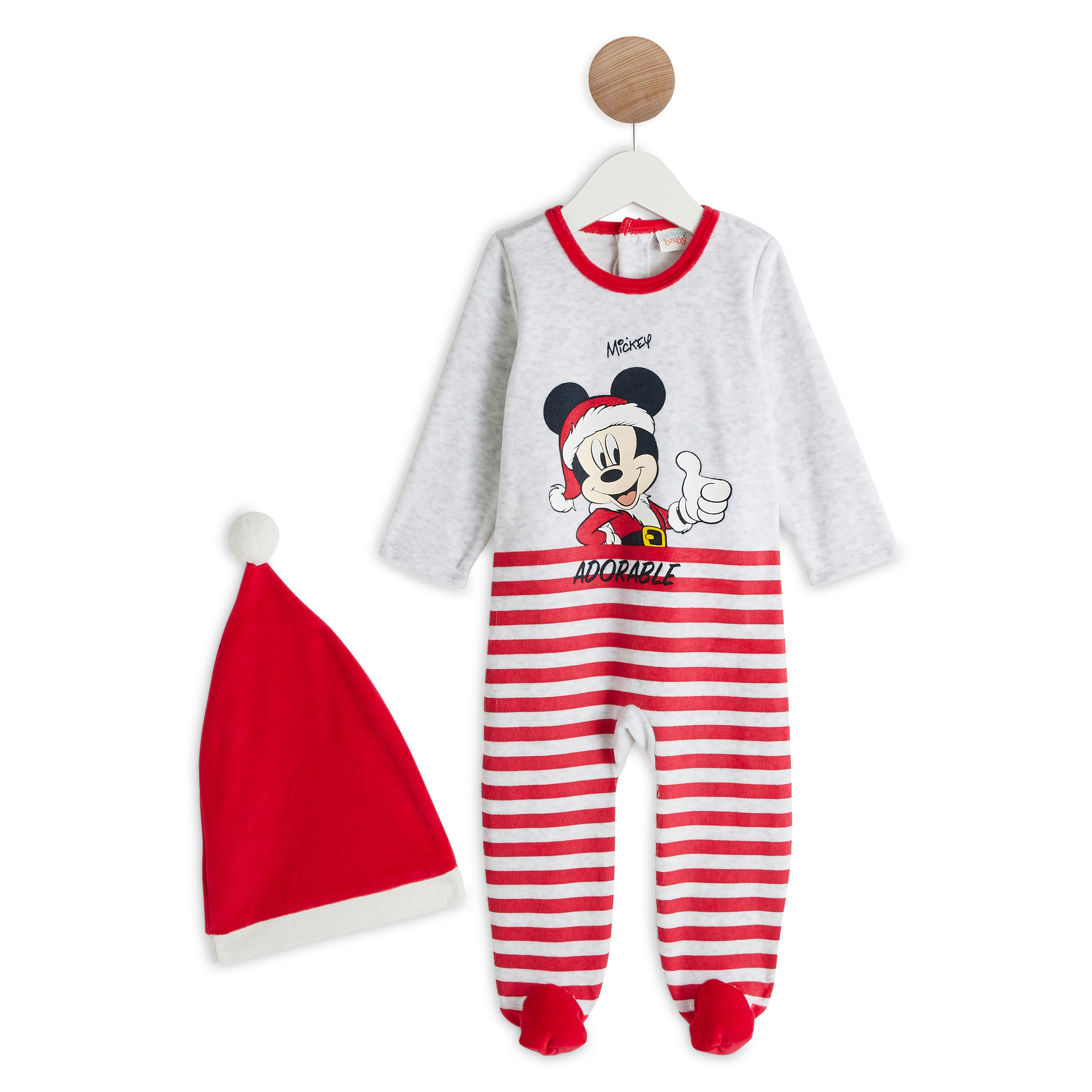 En savoir +Bébé sera adorable dans cet ensemble de Noël composé d'un dors-bien douillet en velours à l'effigie de Mickey, et d'un chapeau de Père Noël en feutrine carrément mignon avec son pompon ! Le dors-bien est rayé au niveau des jambes et possède une ouverture pressionnée au dos.
