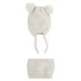 En savoir +Cet ensemble 2 pièces est parfait pour que bébé n’ai pas froid ! En maille épaisse avec sa doublure bien chaude, l’ensemble est composé d’un bonnet péruvien avec pompon, et d’un snood pratique pour l'enfiler facilement autour du cou de bébé.