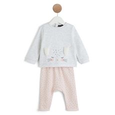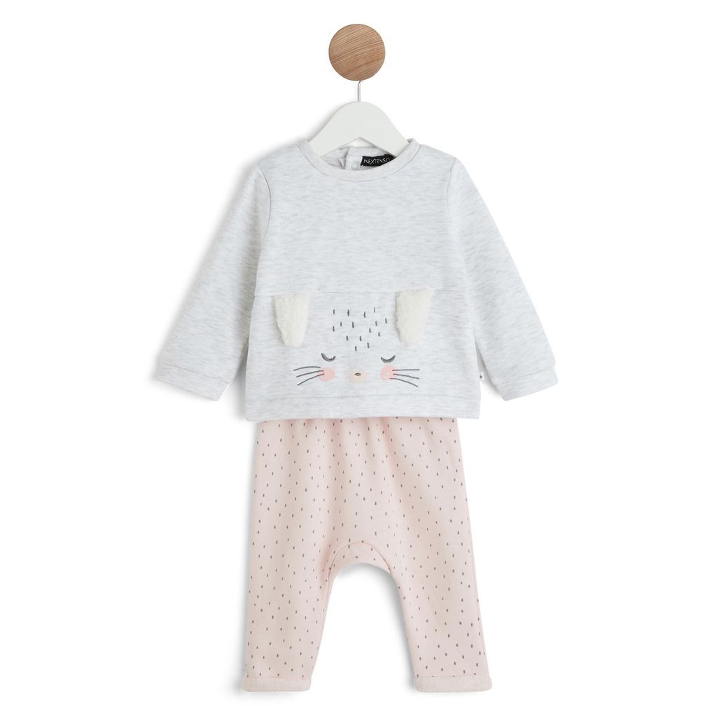 Bébé va adorer s’envelopper dans cet ensemble molletonné bien moelleux imprimé de petits animaux trop mignons ! On craque les oreilles toutes douces en relief sur le sweat qui accompagne le petit animal brodé. Le pantalon possède une forme sarouel pour toujours plus de confort, ainsi qu'une ta