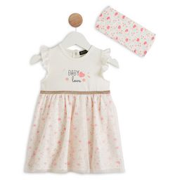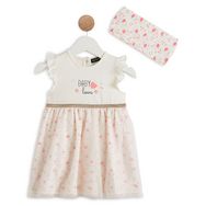 Bébé est à croquer avec cet ensemble robe body à l’imprimé girly ! Cet ensemble coquet se compose d’une jolie robe en coton avec un body à manches courtes intégré, et d’un joli bandeau élastiqué assorti. La robe possède une ouverture pressionnée au dos pour un enfilage facile.