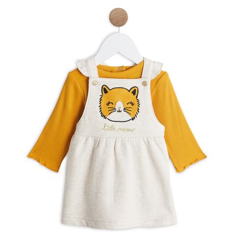 En savoir +On craque pour cette jolie robe salopette avec son body 2en1 à manches longues pour un look carrément à croquer ! Le body est côtelé et possède une fermeture par pression au dos pour faciliter l'habillage. La salopette en molleton affiche un adorable motif chat brodé devant !
