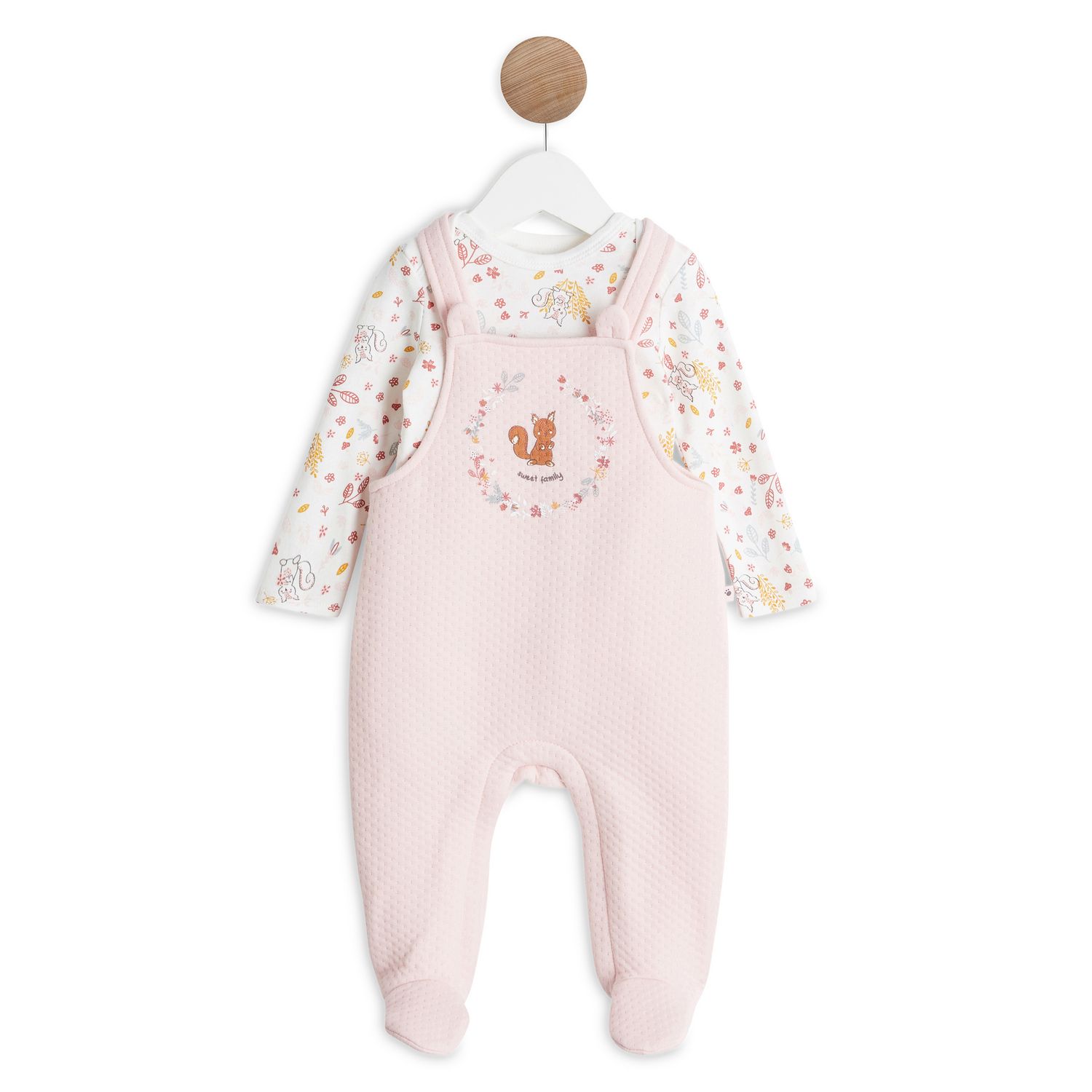 Ensemble de naissance salopette écureuils + body manches longues bébé fille