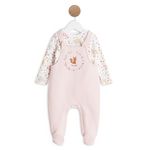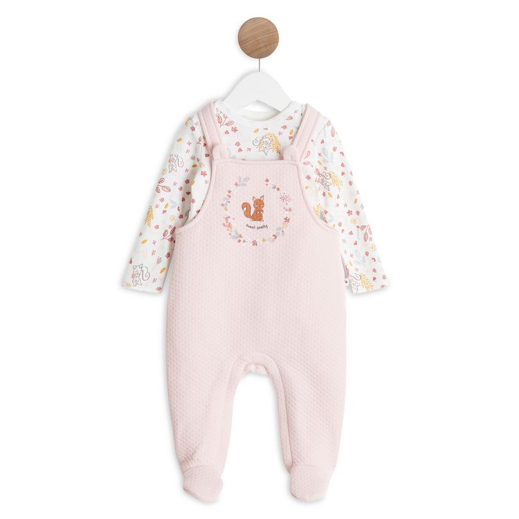 Cet ensemble 2 pièces trop mignon apporte confort et douceur à bébé. Il est composé d'un body col US à manches longues, et d'une jolie salopette quiltée à pieds. On craque pour l'adorable imprimé écureuil en continu sur le body et placé devant sur la salopette !
