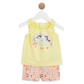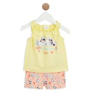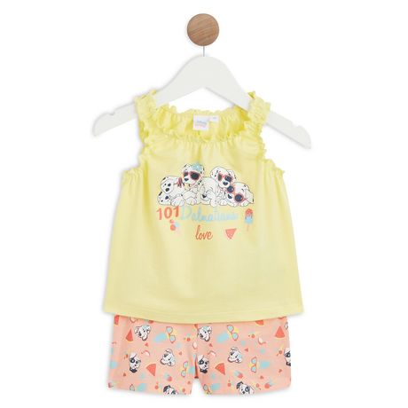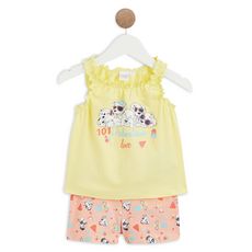 En savoir +Cet été, bébé mixe confort et style en étant habillé aux couleurs de son personnage Disney préféré grâce à ce superbe ensemble composé d’un débardeur froncé aux épaules et imprimé de petits Dalmatiens et d’un short. Pratique, cet ensemble offre une tenue complète fraîche et légère. On adore les imprimés petits chiots des 101 Dalmatiens en continu sur le short !