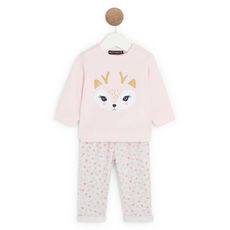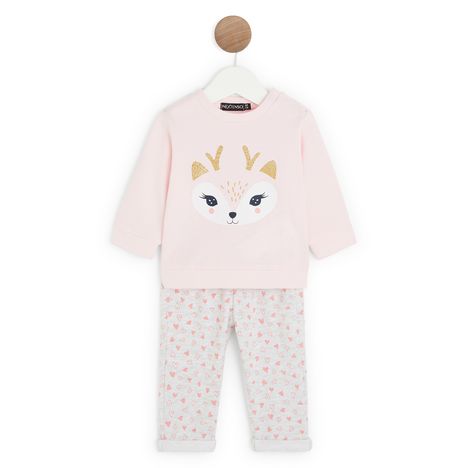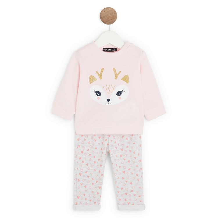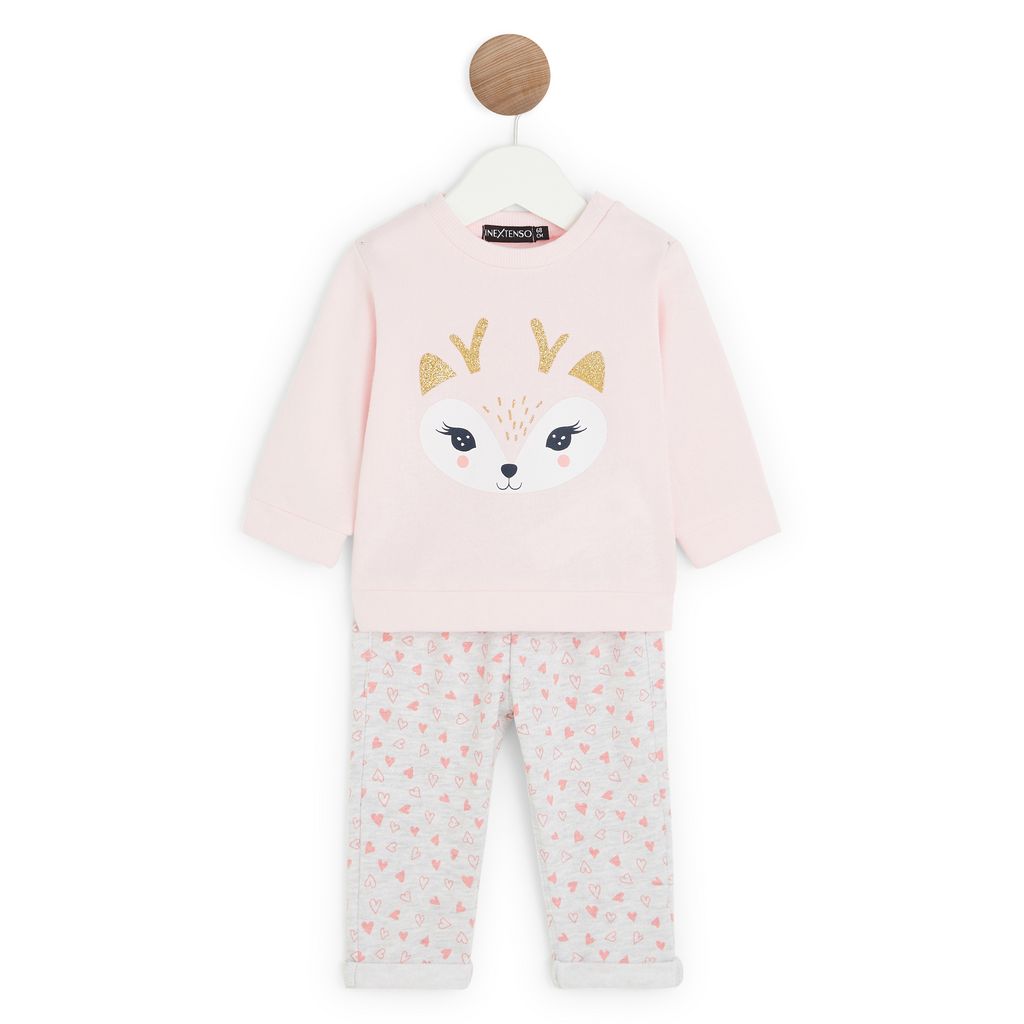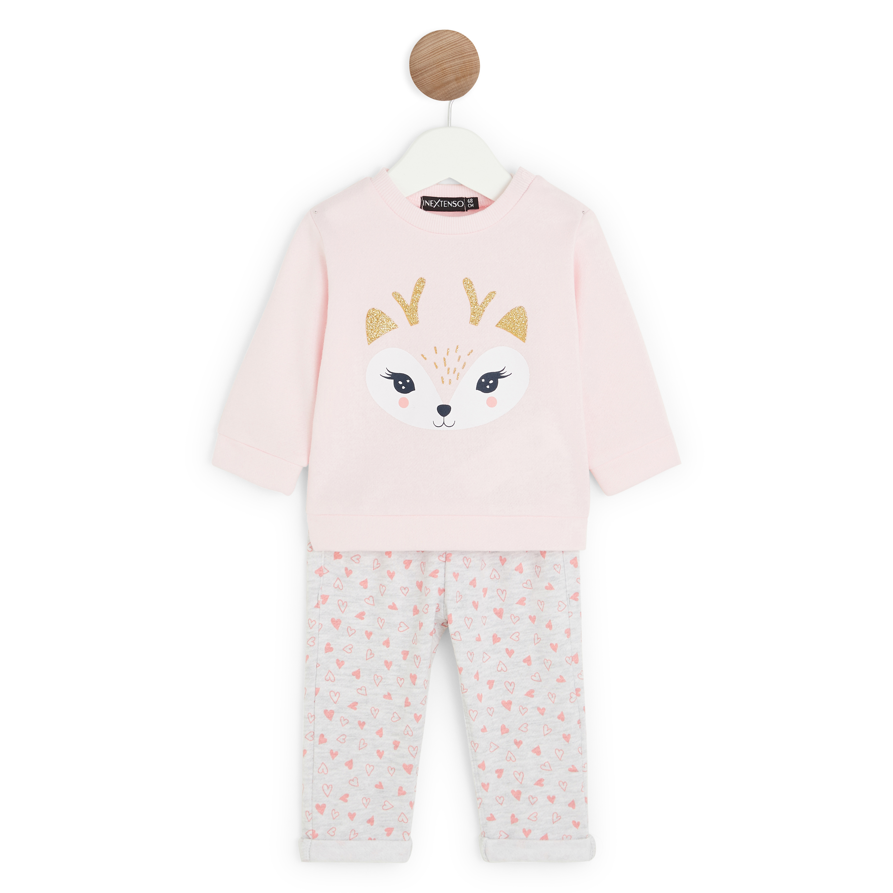 Ensemble molleton sweat rennes + pantalon coeurs bébé fille