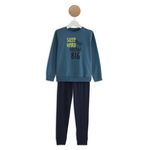 Agréable à porter, cet ensemble de pyjama pour garçon comprend un haut à manches longues raglan, avec un motif fantaisie, un col rond souligné d’un biais contrasté, et d’un pantalon noir avec taille élastiquée et bas de jambes finitions bord-côtes.