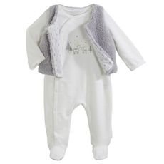 Du confort au quotidien pour bébé avec cet ensemble pyjama et gilet. Agréable à porter et doux. Pyjama : réalisé en velours ras, ouverture pressionnée, imprimé sur le devant. Gilet sans manches : dessus maille peluche douce et douillette, doublure imprimée pour plus de confort, ouverture par un b