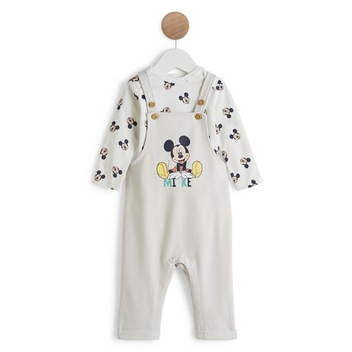 Qu'il est mignon cet ensemble composé d’une salopette et d’un body à manches longues imprimé à l'effigie du célèbre Mickey Mouse ! Confectionné en 100% coton, l’ensemble est ultra confortable et tout doux ! Votre petite prince sera à croquer et à son aise !