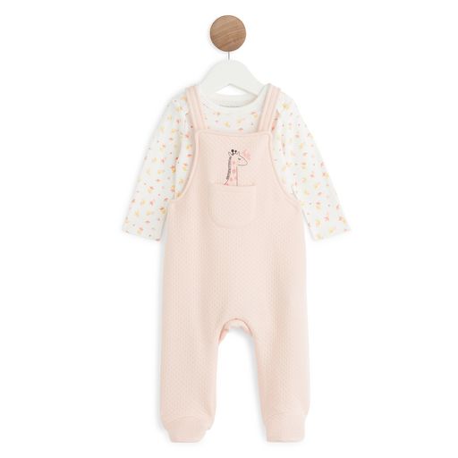Qu'il est mignon cet ensemble tunique + salopette en jersey tout doux, avec son imprimé feuilles délicat, son tendre motif sur le devant et la poche plaquée devant ! Fermeture par pressions aux bretelles et à l'entrejambe.