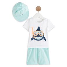 Ensemble t-shirt + bermuda + casquette bébé garçon